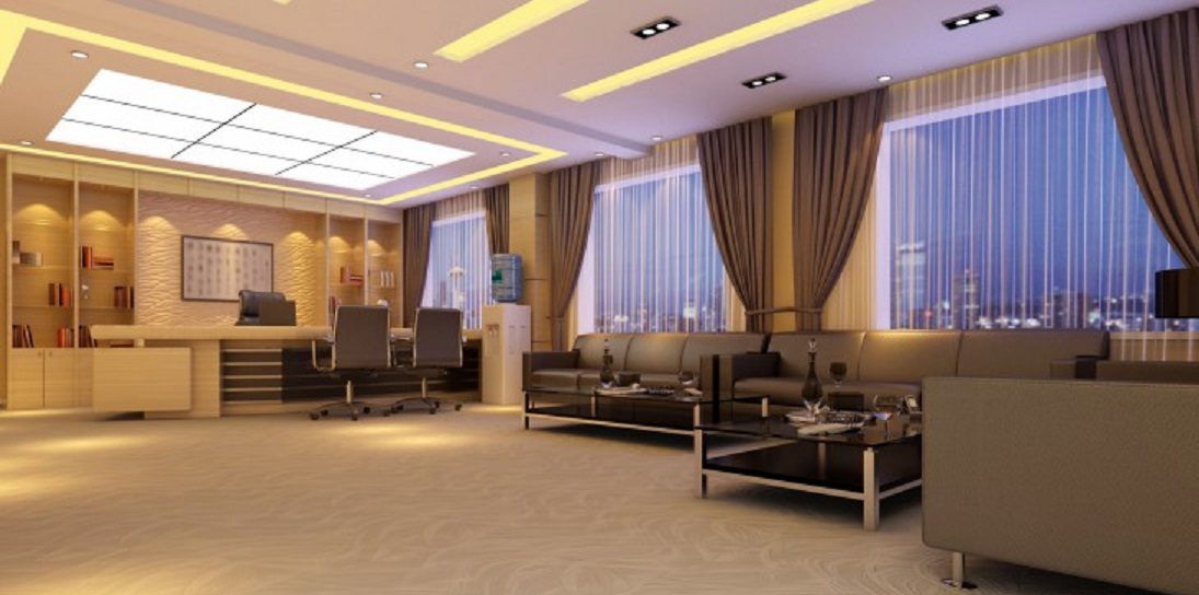 案例說明:本案在設計中采用環(huán)環(huán)相扣的圓弧頂面造型,層層遞近的燈具圍繞圓型屋頂向外拓展,突出空間的立體造型感,也使天花燈飾顯出碧玉般通透潤澤的光影。設計成舞臺平臺的主席臺具備多功能的特點,可兼顧各類舞臺表演及大型會場會議的組織。粗曠沉穩(wěn)的圓形大立柱及方柱,頗具雄偉之勢,但是考慮到其在大型場地內的阻礙性問題,故不將此做再多修飾,僅僅以真石漆的噴涂來達到既不擴大柱圍又美化柱體的作用;地面以座位的安排為向導,輔以簡易直紋拼花來點綴。
